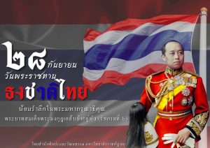 ข่าวประชาสัมพันธ์ ๒๘ กันยายน วันพระราชทาน ธงชาติไทย 29/09/2025 admin ๒๘ กันยายน วันพระราชทาน ธงชาติไทย …………………………………………. น้อมรำลึกในพระมหากรุณาธิคุณ พระบาทสมเด็จพระมงกุฎเกล้าเจ้าอยู่หัว (รัชกาลที่ ๖) โดยสำนักศิลปะและวัฒนธรรม มหาวิทยาลัยราชภัฏเลย Share to...